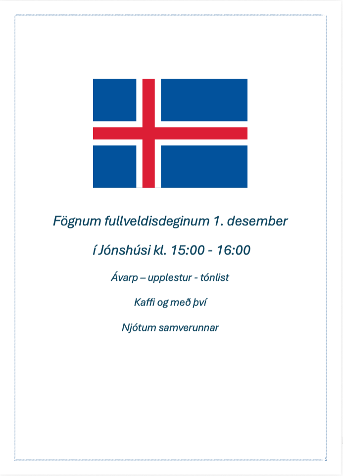 Fögnum fullveldisdeginum 1. desember í Jónshúsi