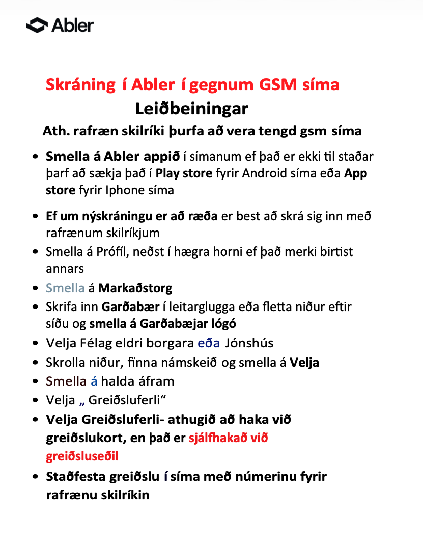 Hér er að finna handhægar leiðbeiningar til þess að setja upp Abler á GSM síma.